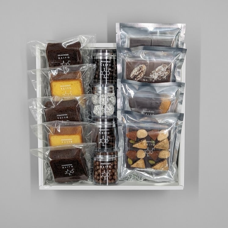 いろいろなヴァリエーションの焼き菓子とチョコレートが入った詰め合わせギフトです。